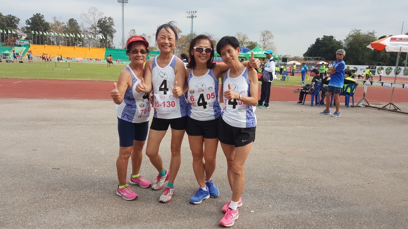 A blistering sun, temperatures rising into the 30’s, and the noisiest stadium ever, thanks to the drums, castanets and chanting of Thailand’s most enthusiastic cheerleaders, may have softened up some of the athletes at the 23rd Thailand Masters Athletic Championships on March 9-11, but the AVOHK contingent showed their true grit andperformed like stars.