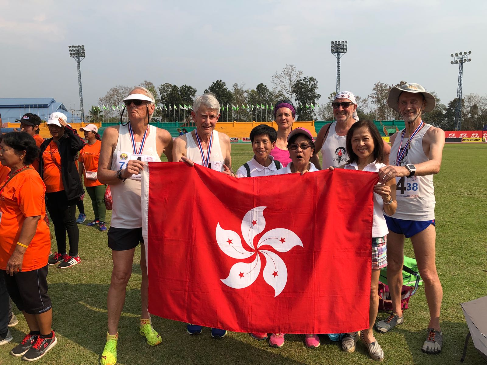 A blistering sun, temperatures rising into the 30’s, and the noisiest stadium ever, thanks to the drums, castanets and chanting of Thailand’s most enthusiastic cheerleaders, may have softened up some of the athletes at the 23rd Thailand Masters Athletic Championships on March 9-11, but the AVOHK contingent showed their true grit andperformed like stars.